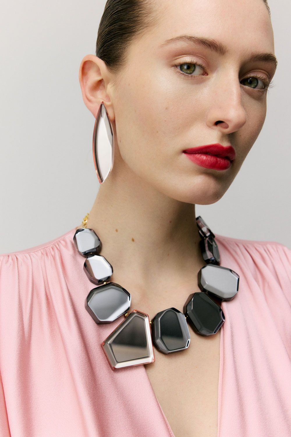 Αντλώντας έμπνευση από την αρχιτεκτονική, την τέχνη και το design, η Vanessa δημιουργεί μοναδικά κομμάτια που λειτουργούν ως sculptural αντικείμενα. Κάθε σχέδιο συνδυάζει έντονες γραμμές, τολμηρές αποχρώσεις και ανάλαφρα υλικά, όπως acetate και plexiglass, ώστε να είναι εντυπωσιακά αλλά και άνετα στην καθημερινή χρήση.